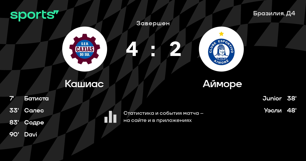 Кашиас – Айморе: Кашиас забивает в 9 из 10 последних матчей против этого соперника