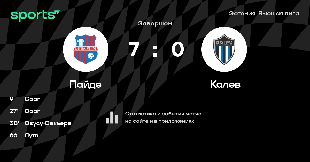 | 3 | Пайде | 36 | 19 | 8 | 9 | 84 | 37 | +47 | 65 | ||