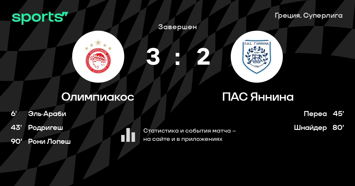 Трансляция Олимпиакос - ПАС Яннина