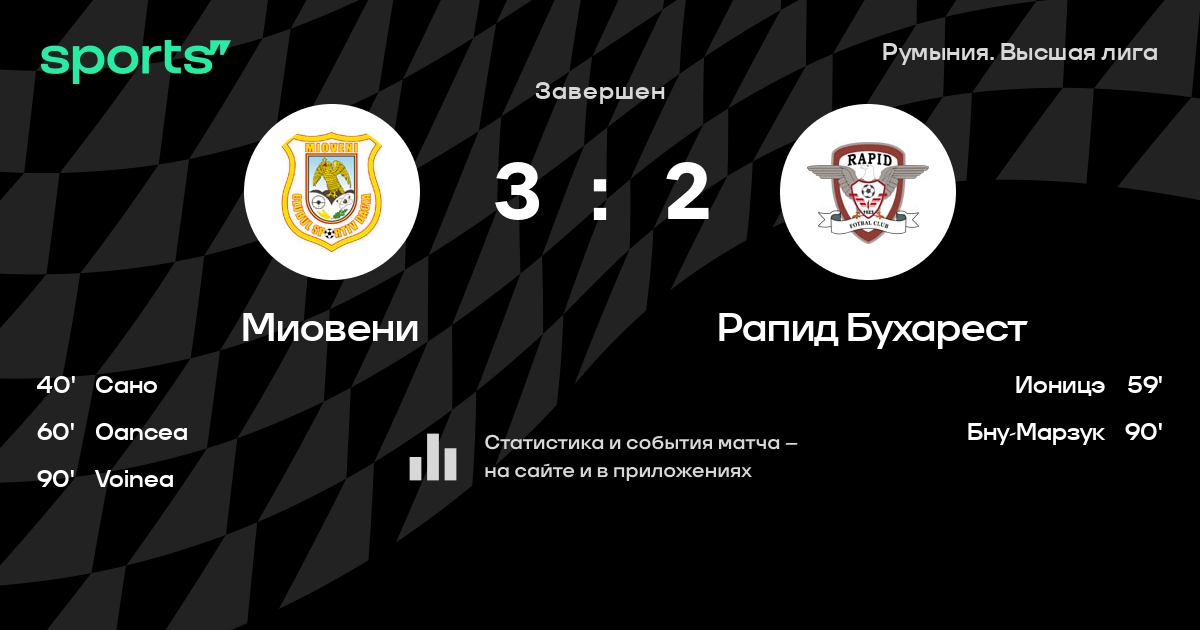 Миовени – Рапид Бухарест: Рапид Бухарест не проигрывает в 6 из 8 последних матчей против этого соперника