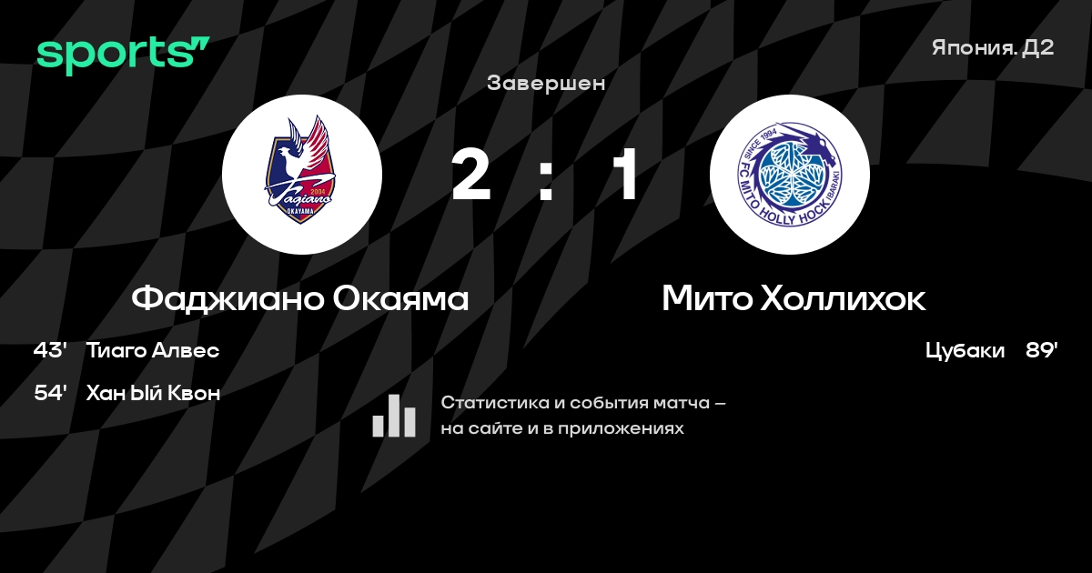 Фаджиано Окаяма – Мито Холлихок: Мито Холлихок забивает в 8 из 10 последних матчей против этого соперника