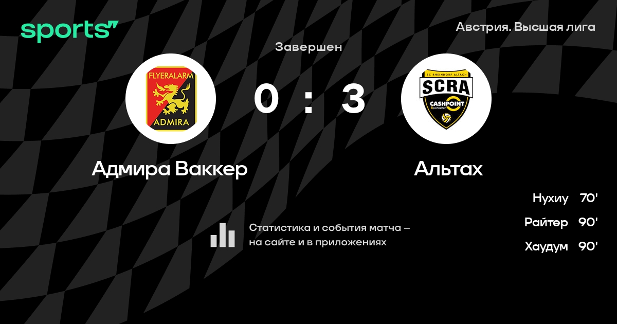 Адмира – Альтах: Адмира не проигрывает в 6 последних матчах против этого соперника