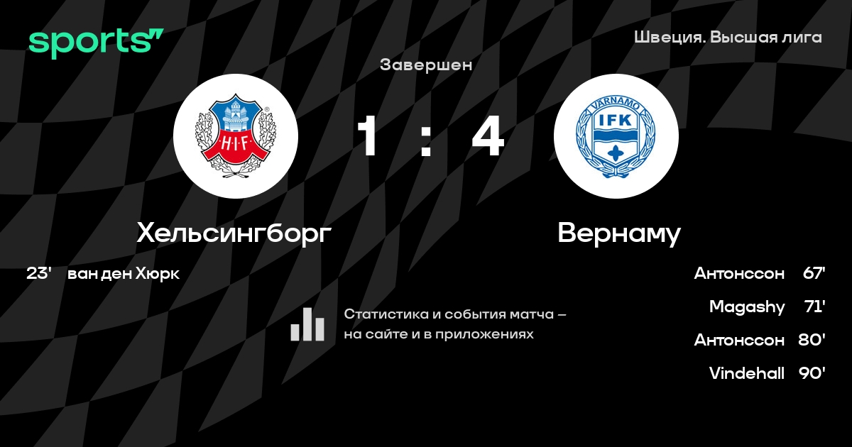 Вернаму не выигрывает в 5 последних матчах в гостях в турнире «Швеция. Высшая лига»