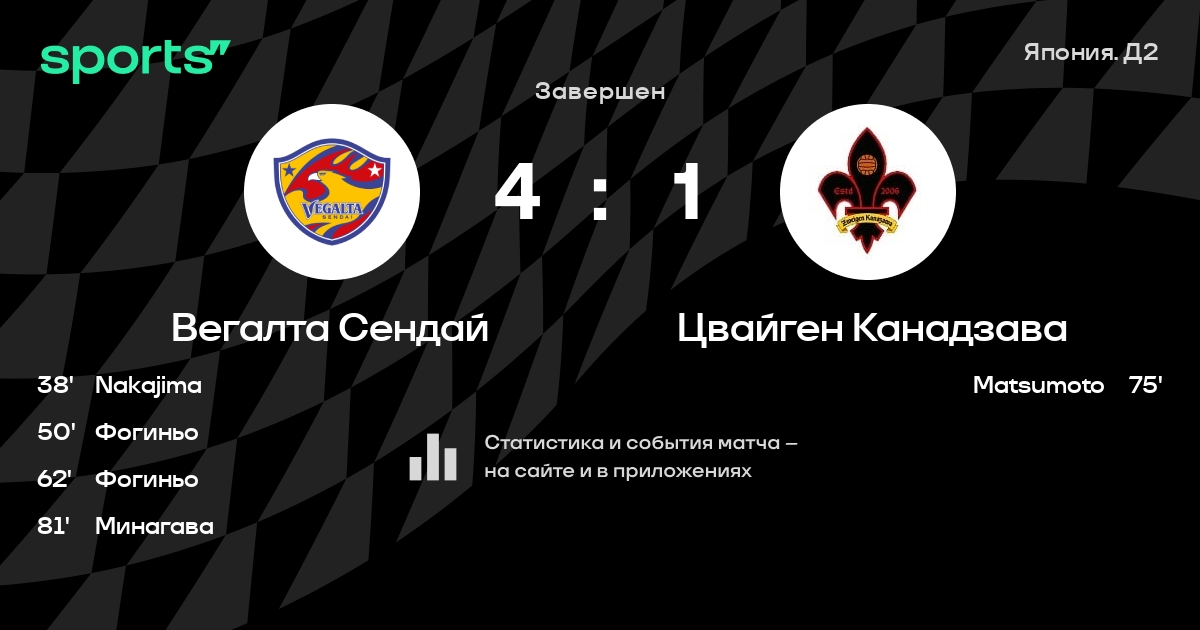 Результат прошлой игры в турнире «Япония. Д2»: В-Варен Нагасаки – Вегалта Сендай 0:2. После 15 туров Вегалта Сендай набирает 29 очков и занимает 2 место в турнире. Лучший бомбардир команды – R. Kida: он забил 5 в 11 матчах. Вегалта Сендай имеет в активе больше всех побед в турнире – 9. В 9 последних матчах в турнире «Япония. Д2» Вегалта Сендай обязательно забивает. В последних 5 играх Вегалта Сендай забивает 10 голов. В последних 5 играх Вегалта Сендай пропускает 4 голов.