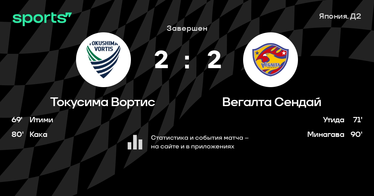 Токусима Вортис – Вегалта Сендай: Вегалта Сендай не проигрывает в 11 из 12 последних матчей против этого соперника в гостях