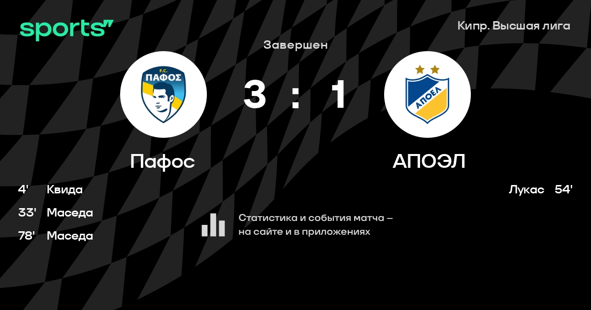 Пафос – АПОЭЛ: Пафос забивает в 8 последних матчах против этого соперника