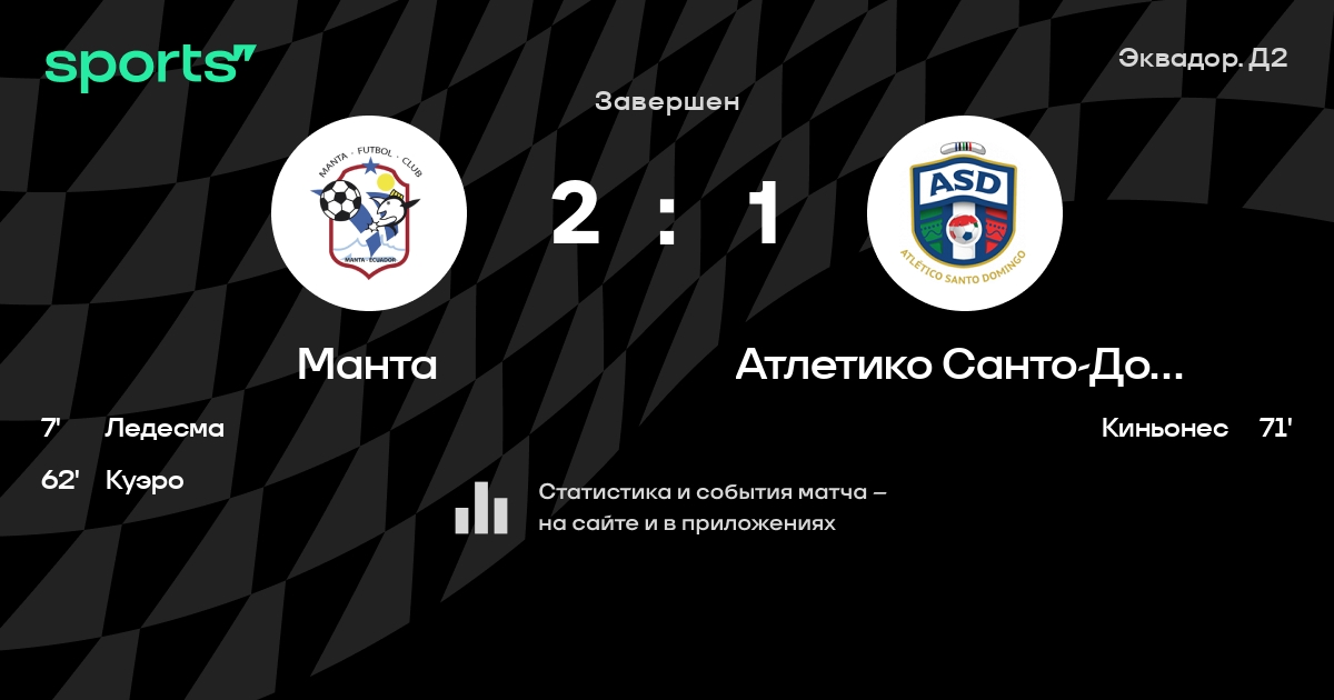 Манта – Атлетико Санто-Доминго: Атлетико Санто-Доминго не проигрывает в 5 из 7 последних матчей против этого соперника