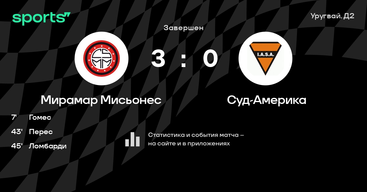 Мирамар Мисьонес – Суд-Америка: Мирамар Мисьонес не проигрывает в 5 из 7 последних матчей против этого соперника дома в турнире «Уругвай. Д2»