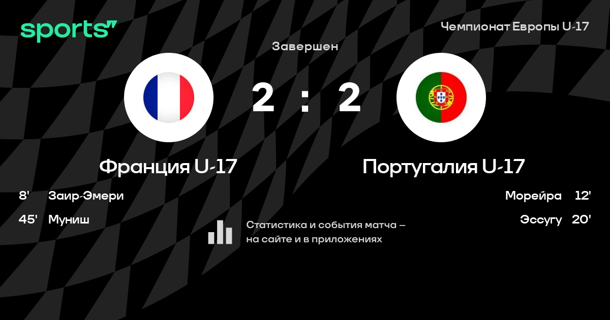 В последних 5 играх Португалия U-17 забивает в среднем 2.40 гола за игру