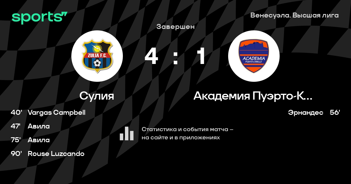 Сулия – Академия Пуэрто-Кабельо: Академия Пуэрто-Кабельо не проигрывает в 5 из 6 последних матчей против этого соперника