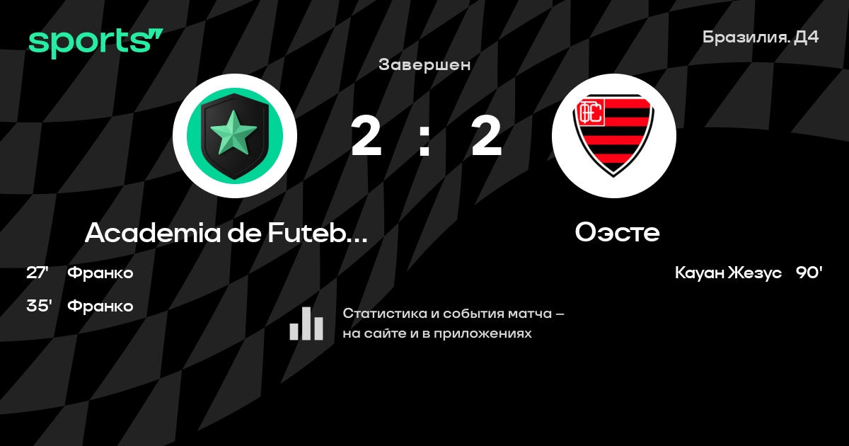 Трансляция Academia de Futebol Pérolas Negras - Оэсте