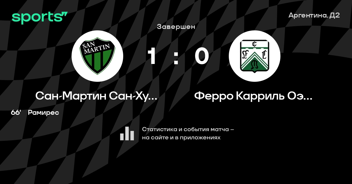 Сан-Мартин Сан-Хуан – Ферро Карриль Оэсте: Сан-Мартин Сан-Хуан не проигрывает в 5 из 7 последних матчей против этого соперника