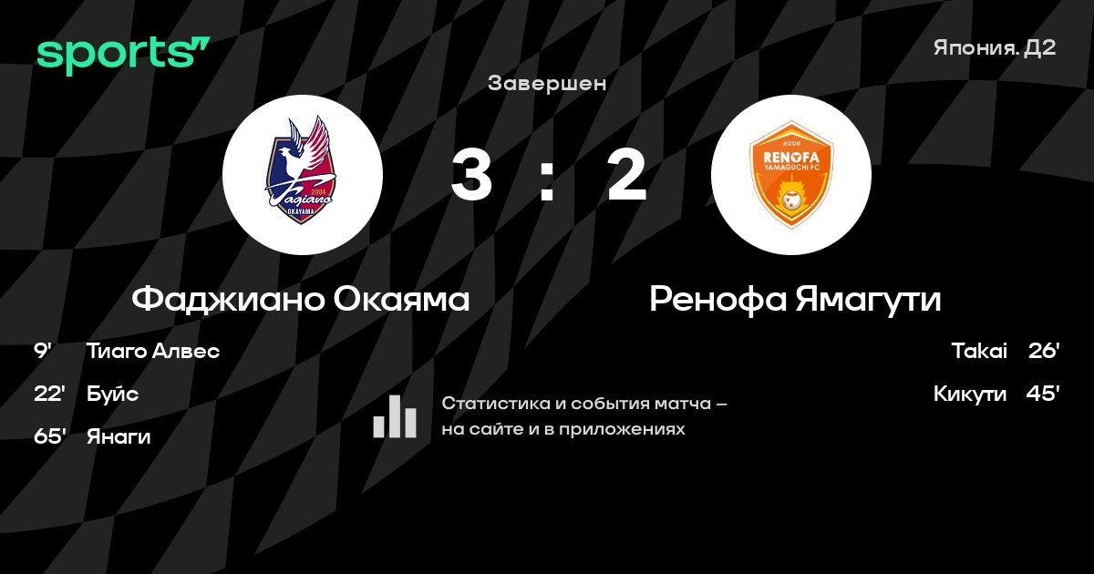 Фаджиано Окаяма – Ренофа Ямагути: Фаджиано Окаяма забивает в 6 из 8 последних матчей против этого соперника