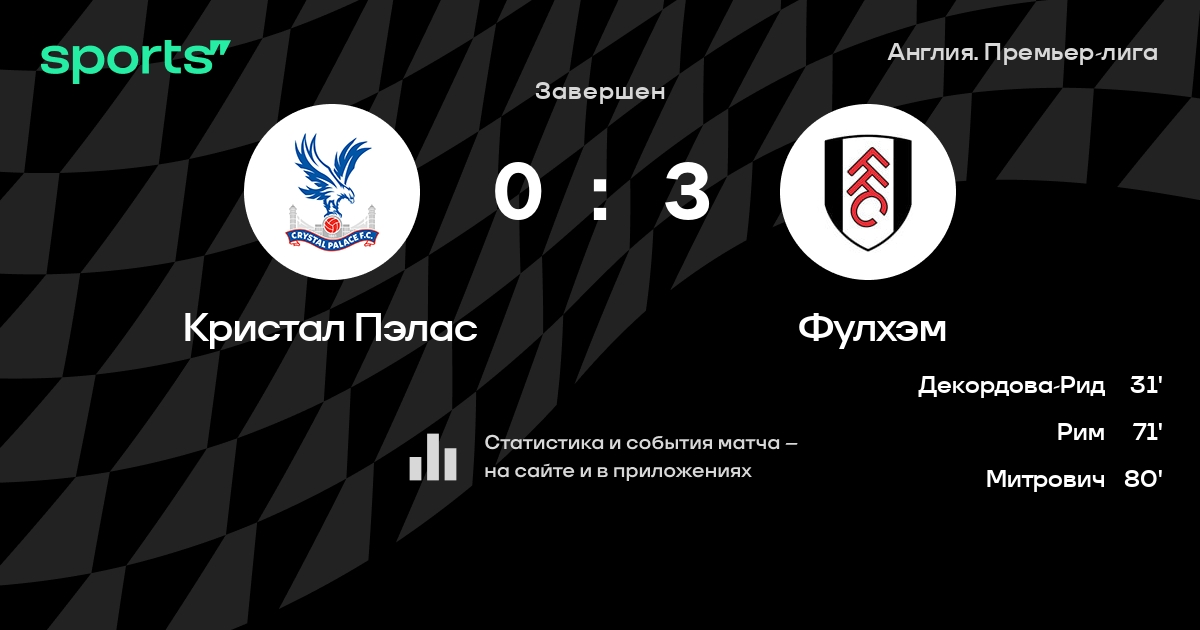 Кристал Пэлас – Фулхэм: Кристал Пэлас забивает в 9 из 11 последних матчей против этого соперника