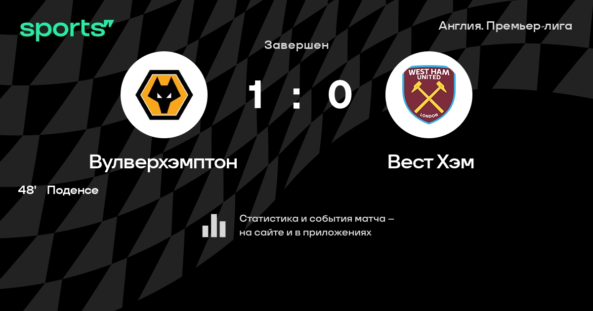 В последних 5 играх Вулверхэмптон забивает в среднем 1.20 гола за игру