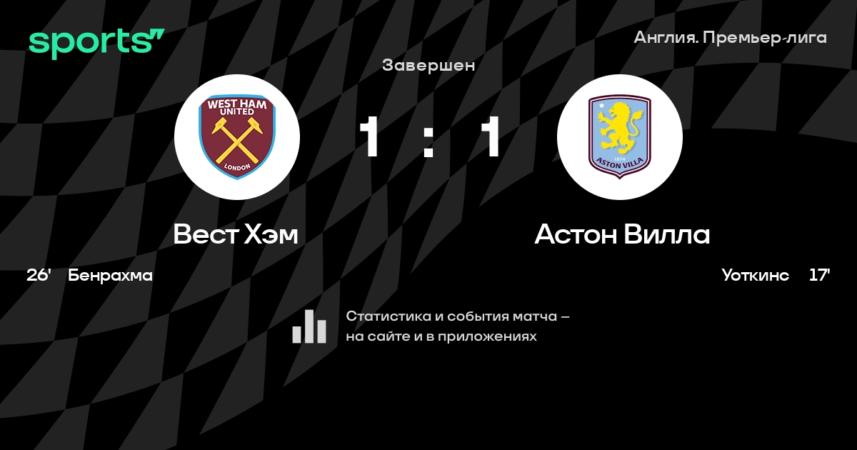 Вест Хэм – Астон Вилла: Астон Вилла забивает в 5 из 7 последних матчей против этого соперника