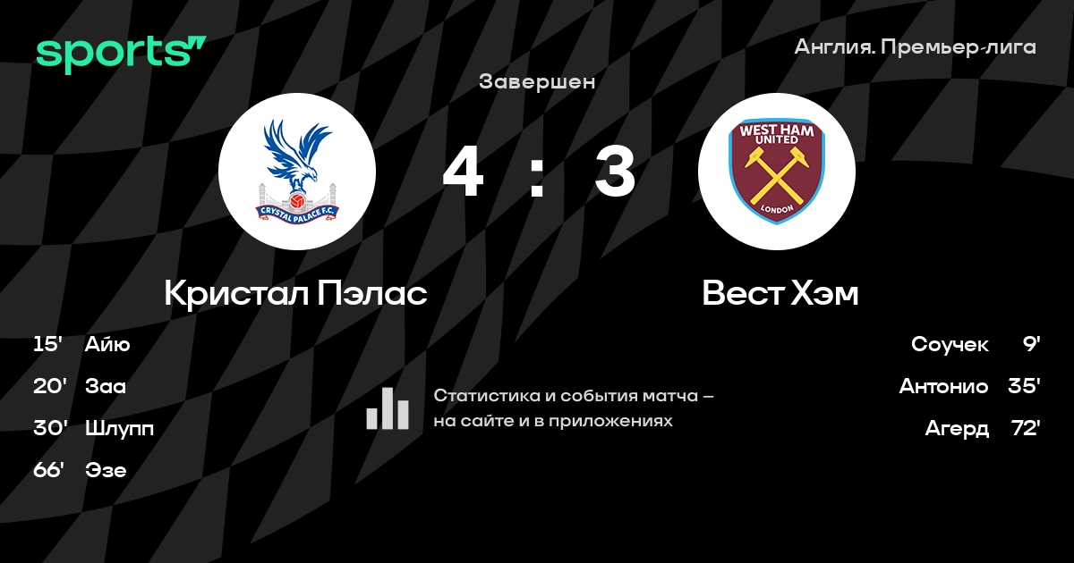 Кристал Пэлас – Вест Хэм: Кристал Пэлас забивает в 11 последних матчах против этого соперника