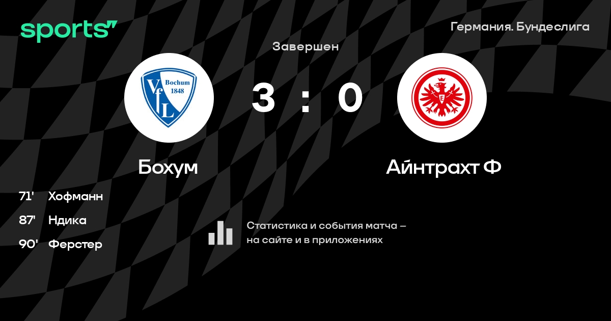 Бохум – Айнтрахт Ф: Айнтрахт Ф не проигрывает в 6 из 8 последних матчей против этого соперника