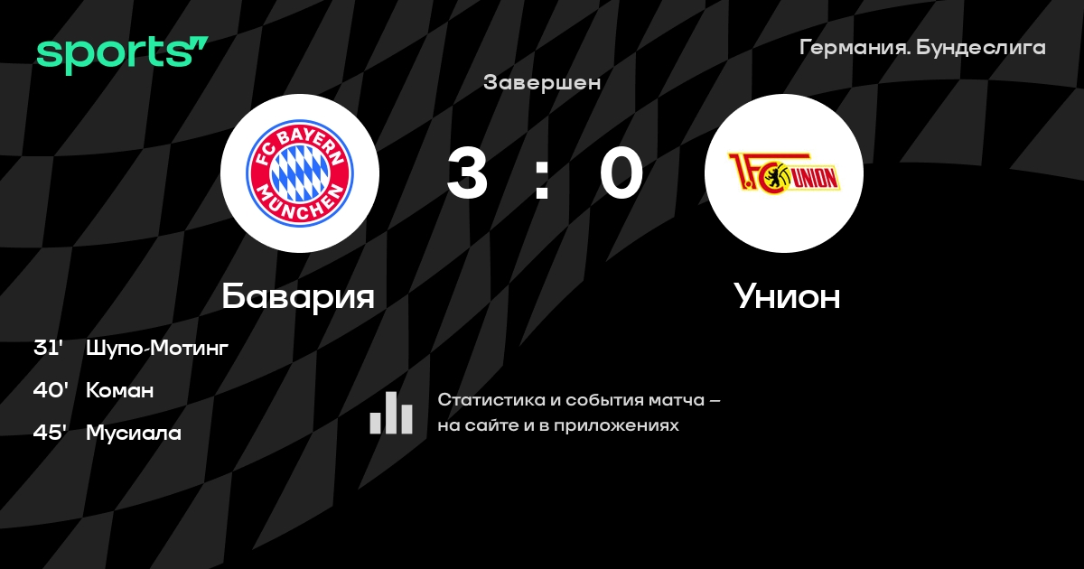 Бавария – Унион Берлин: Бавария не проигрывает в 8 последних матчах против этого соперника