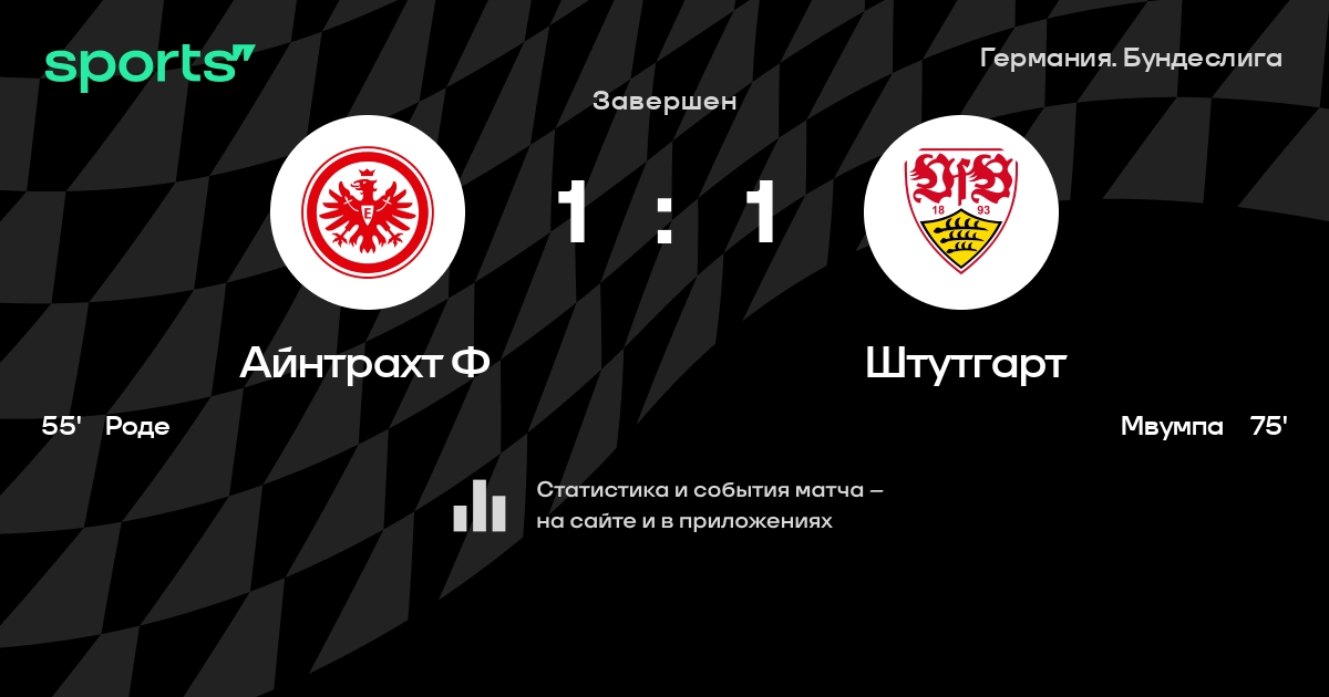 Айнтрахт Ф – Штутгарт: Айнтрахт Ф забивает в 7 последних матчах против этого соперника