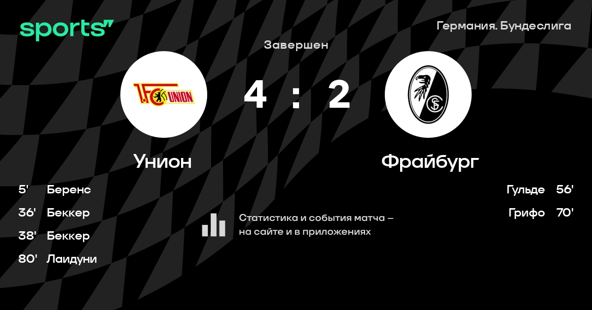Унион Берлин – Фрайбург: Унион Берлин забивает в 8 из 10 последних матчей против этого соперника