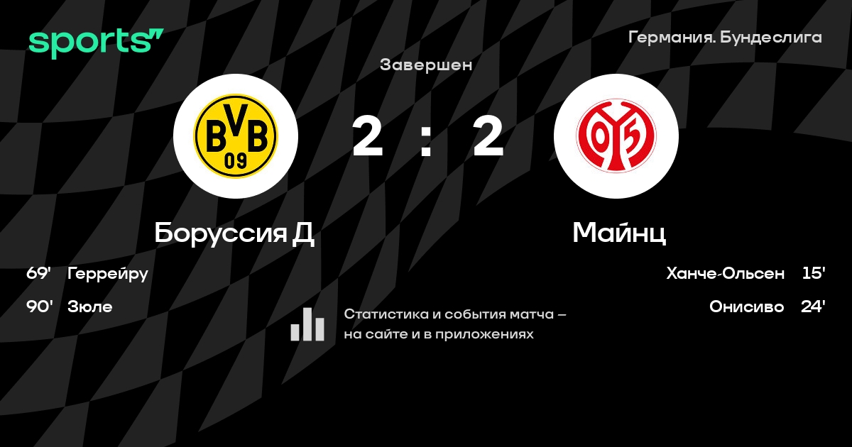 Боруссия Д – Майнц: Боруссия Д побеждает в 4 последних очных матчах