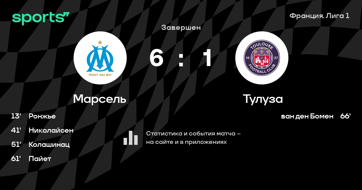 Чемпионат Франции. «Марсель» забил 6 мячей «Тулузе», «Ницца» и «Ланс» сыграли 0:0