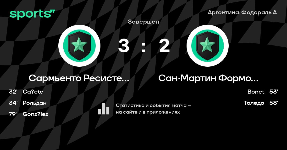 Сармьенто Ресистенсия – Сан-Мартин Формоса: Сармьенто Ресистенсия побеждает в 5 последних очных матчах