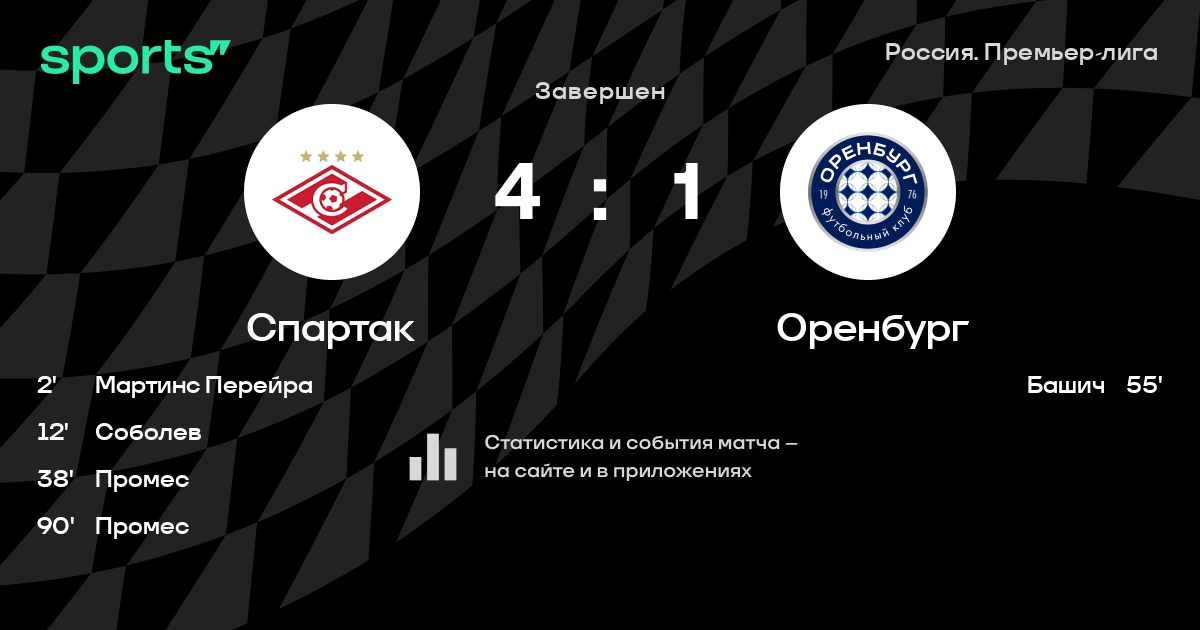 Спартак – Оренбург: Оренбург забивает в 4 последних матчах против этого соперника