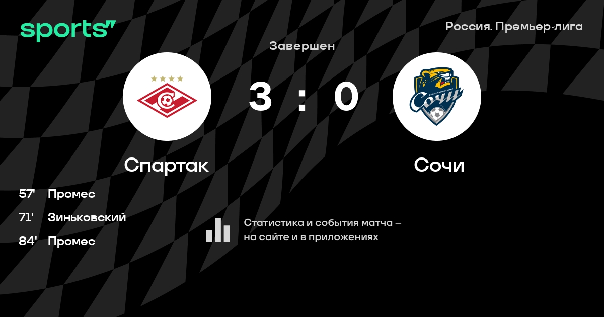 Спартак – Сочи: Сочи не проигрывает в 5 из 7 последних матчей против этого соперника