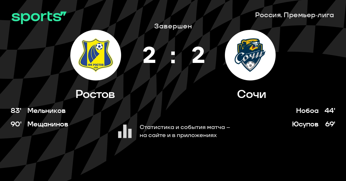 Ростов – Сочи: Сочи не проигрывает в 5 последних матчах против этого соперника