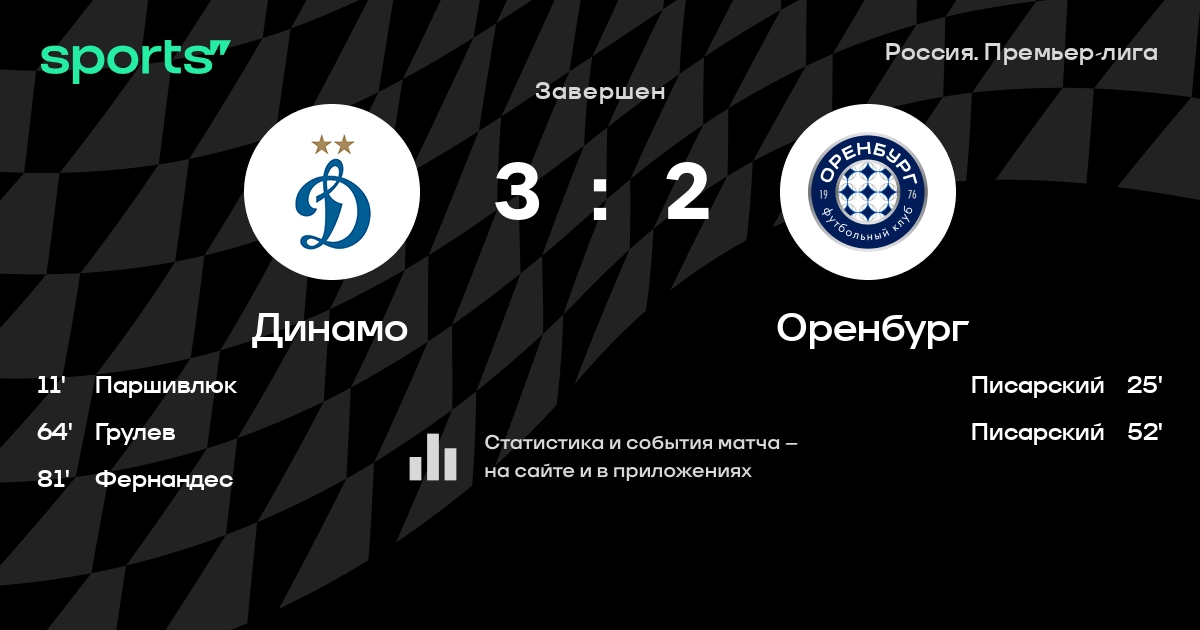 Динамо – Оренбург: Оренбург побеждает в 3 последних очных матчах в турнире «Премьер-лига»