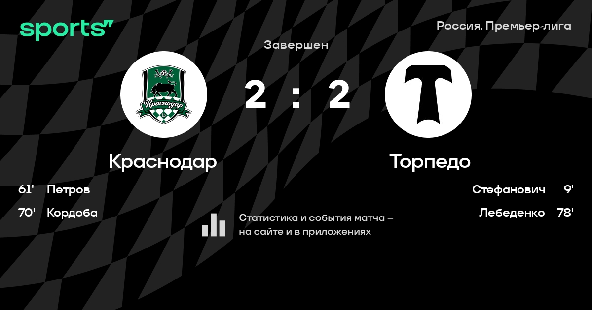 Краснодар – Торпедо: коэффициенты