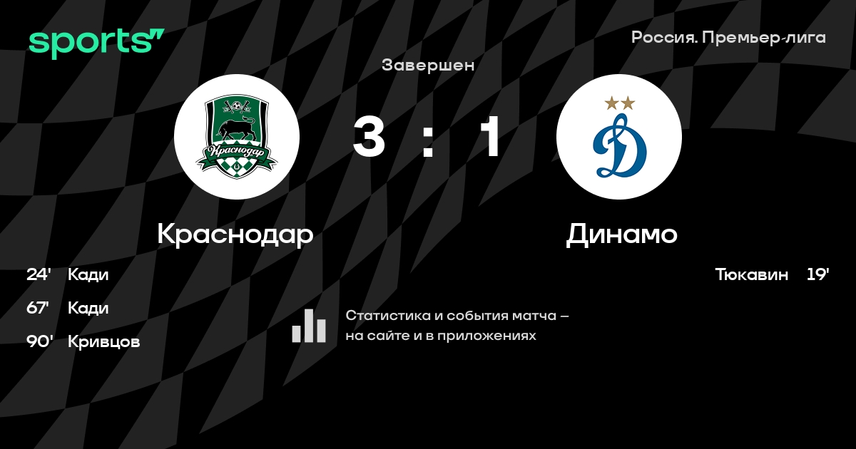 Краснодар – Динамо: Динамо не пропускает в 3 последних матчах против этого соперника
