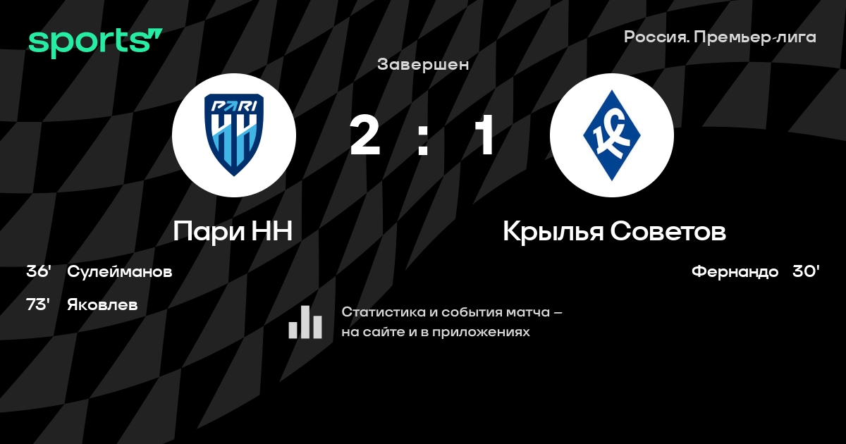 Пари НН – Крылья Советов: Крылья Советов не проигрывает в 5 последних матчах против этого соперника