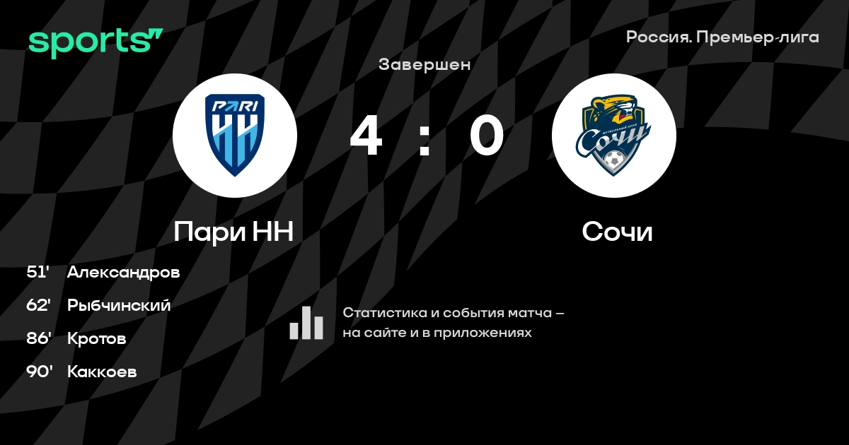 Пари НН – Сочи: коэффициенты