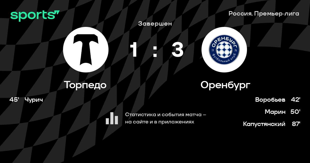 Торпедо – Оренбург: Оренбург забивает в 5 последних матчах против этого соперника