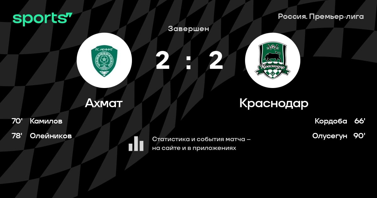 Ахмат – Краснодар: Краснодар забивает в 4 последних матчах против этого соперника
