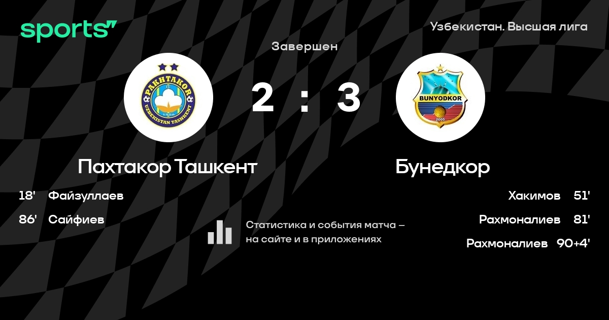 Пахтакор Ташкент – Бунедкор: Пахтакор Ташкент забивает в 10 последних матчах против этого соперника