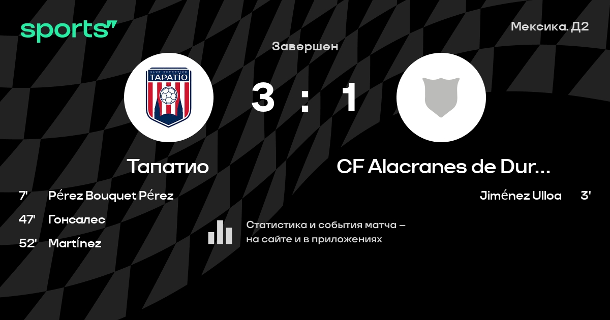 Тапатио – CF Alacranes de Durango: коэффициенты