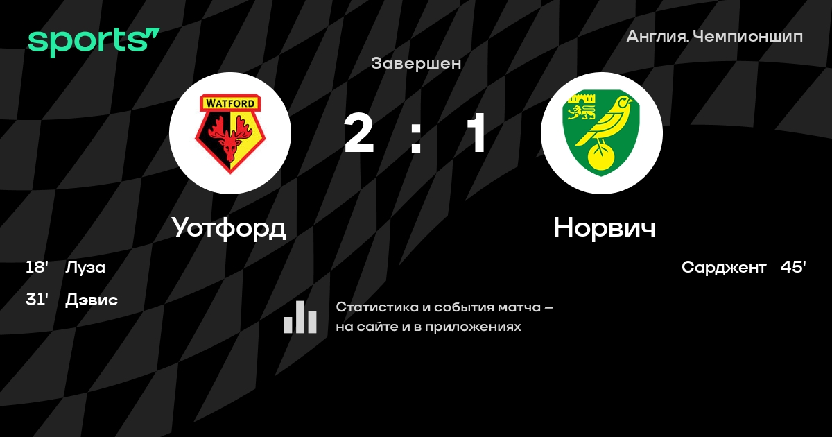 Уотфорд – Норвич: Уотфорд не проигрывает в 5 из 7 последних матчей против этого соперника