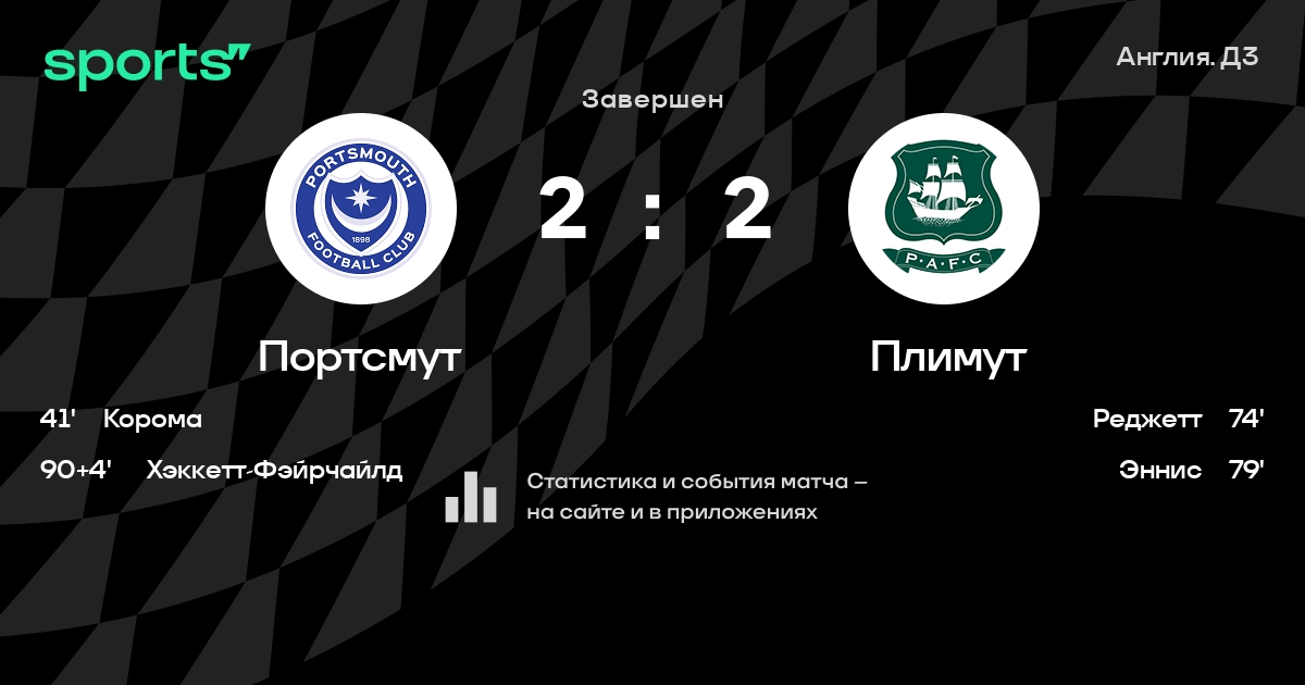 Портсмут – Плимут: Плимут забивает в 5 последних матчах против этого соперника
