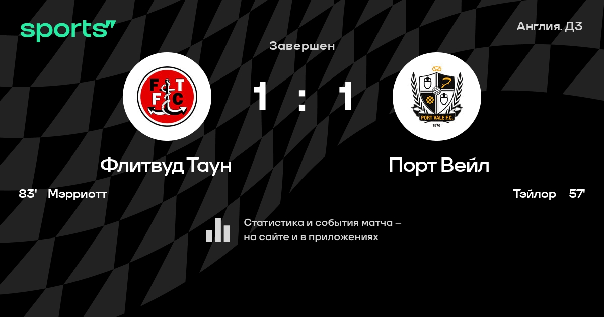 Флитвуд Таун – Порт Вейл: Порт Вейл не проигрывает в 5 последних матчах против этого соперника в турнире «Лига 1»