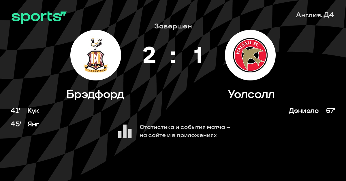 Брэдфорд – Уолсолл: Уолсолл забивает в 4 последних матчах против этого соперника