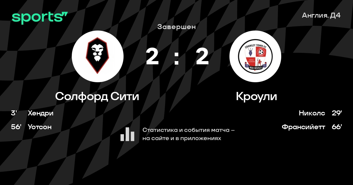 Солфорд Сити – Кроули: Кроули забивает в 4 последних матчах против этого соперника