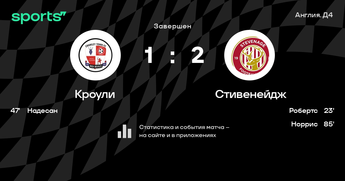 Кроули – Стивенейдж: Кроули забивает в 3 последних матчах против этого соперника