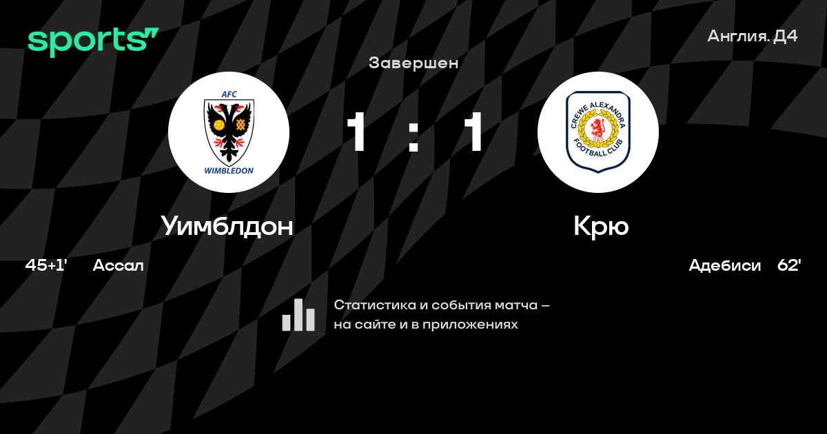 Уимблдон – Крю: Крю забивает в 6 последних матчах против этого соперника