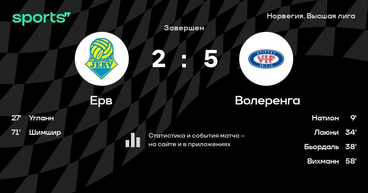 В последних 5 играх Ерв забивает в среднем 1.00 гола за игру