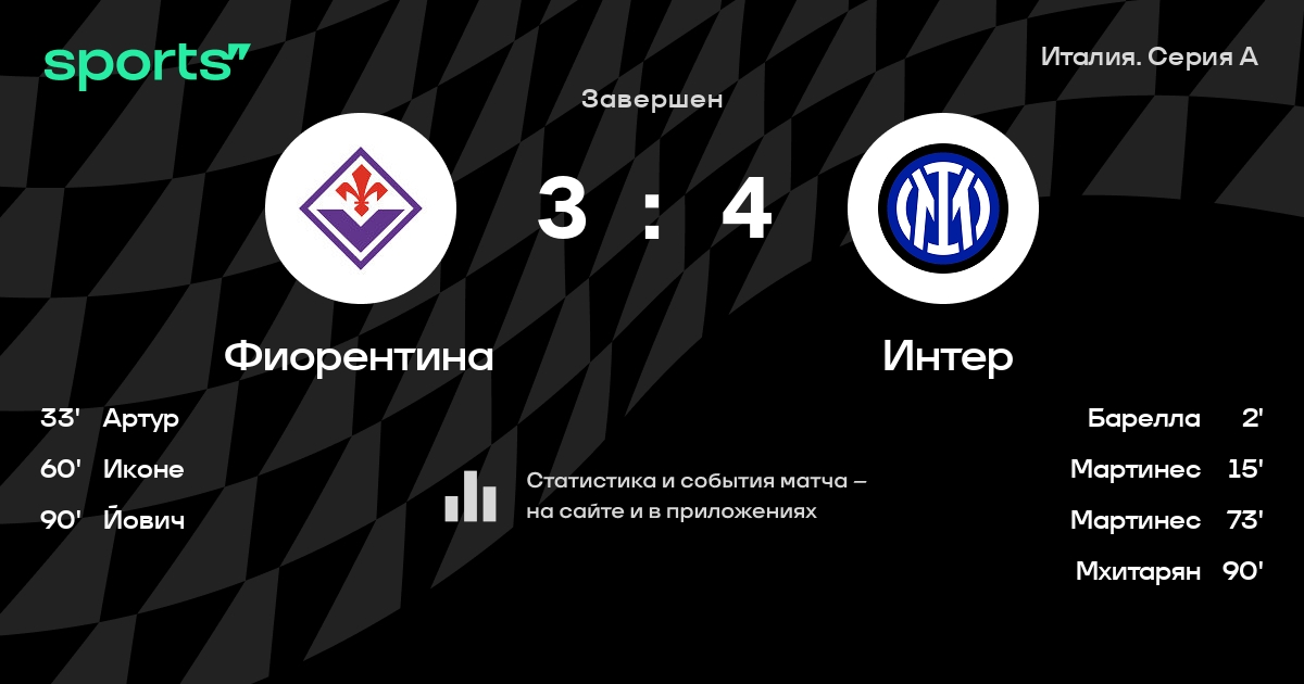 Фиорентина – Интер: Интер не проигрывает в 12 последних матчах против этого соперника