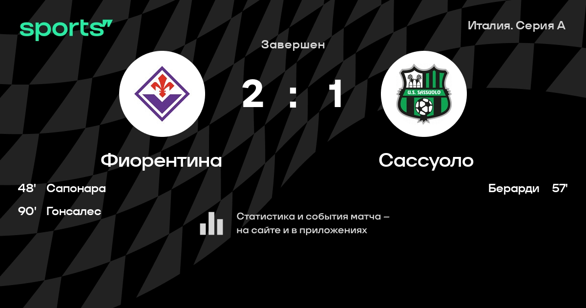 Фиорентина – Сассуоло: Сассуоло не проигрывает в 5 последних матчах против этого соперника